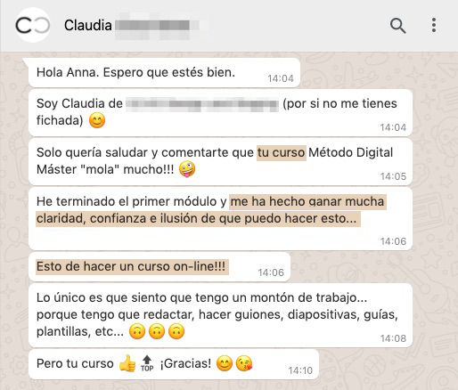 Se compromete al 100% con tu proyecto y aunque no tengas experiencia previa en el mundo online, te lo hace fácil y te guía consiguiendo que creas en ti y que te lances con total confianza.